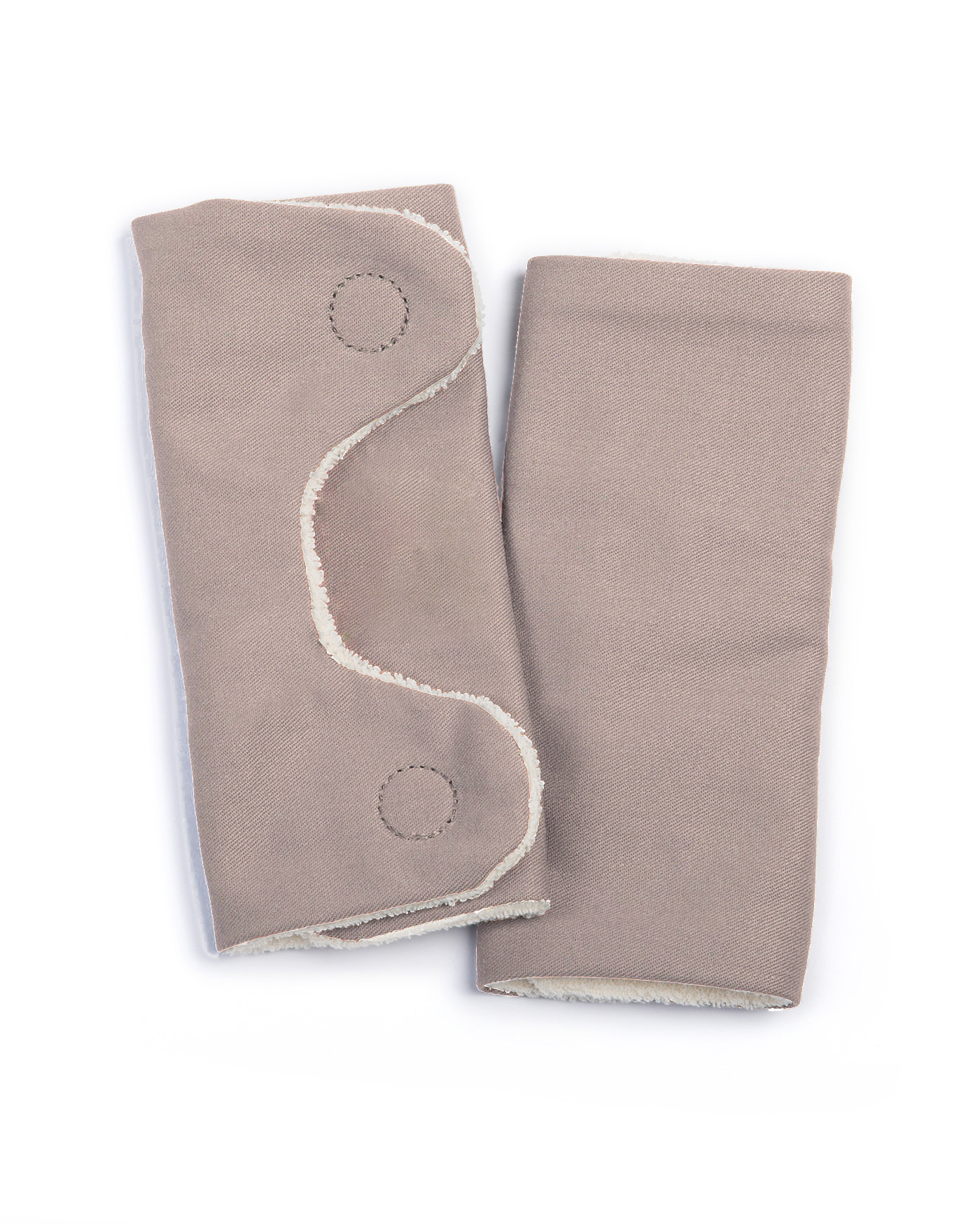 Die Schoner werden auf Höhe des Gesichtes um die Schultergurte gelegt und schützen so Baby und Trage.