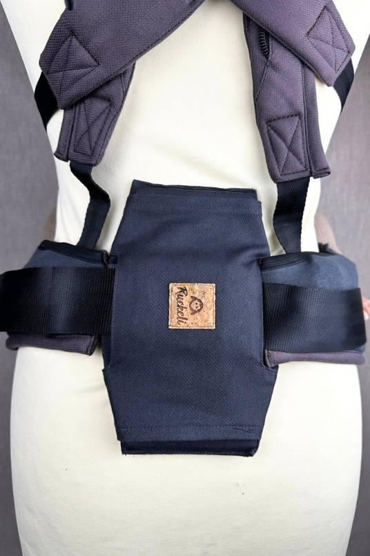 Die Ruckeli Lumbalstütze sorgt für spürbare Entlastung beim Tragen. Sie verbreitert die Auflagefläche im Lendenwirbelbereich und unterpolstert gleichzeitig die Bauchgurtschnalle deiner Babytrage.
